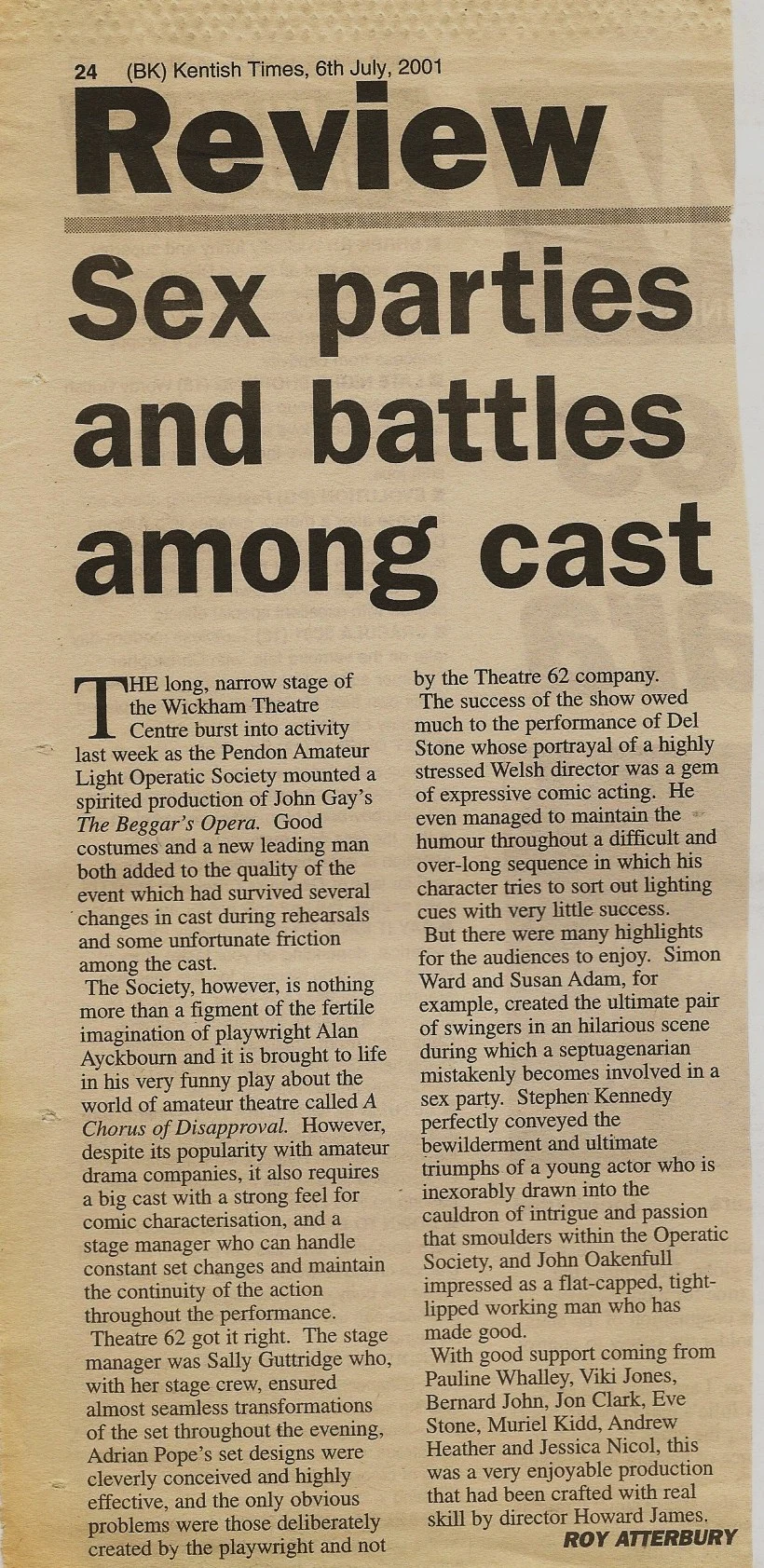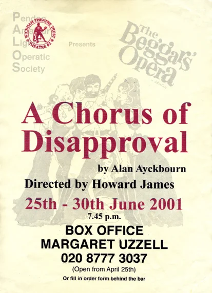 By Alan Ayckbourn. Directed by Howard James. Perceived to be of influence, Guy Jones is courted by members of the Pendon Amateur Light Operatic Society by promotion to the lead in 'The Beggar's Opera'. He is offered sexual favours and various perks, but is shunned when the truth is revealed. The action takes place in and around Pendon, Bucks, as members of the Pendon Amateur Light Operatic Society progresses from their first rehearsal to a performance. Photos below.