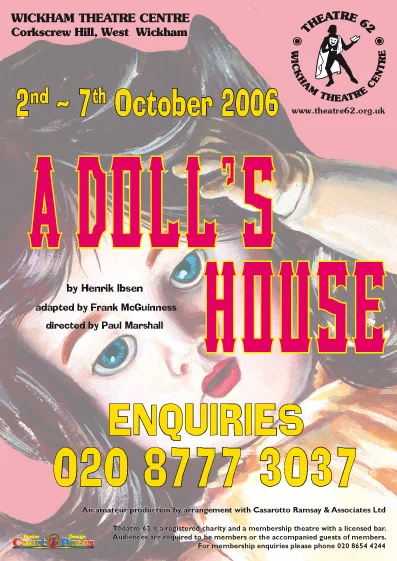 By Henrik Ibsen, adapted by Frank McGuiness. Directed by Paul Marshall. Nora leaves her husband after realising that her role in the marriage is that of a doll and her home is a doll's house. Her husband's disgust on discovering she had committed forgery, to obtain money in order to save his life, causes her to search for a better life in her own right. The action takes place in the sitting room of the Helmer's apartment in a small town in Norway. It is Christmas 1879.