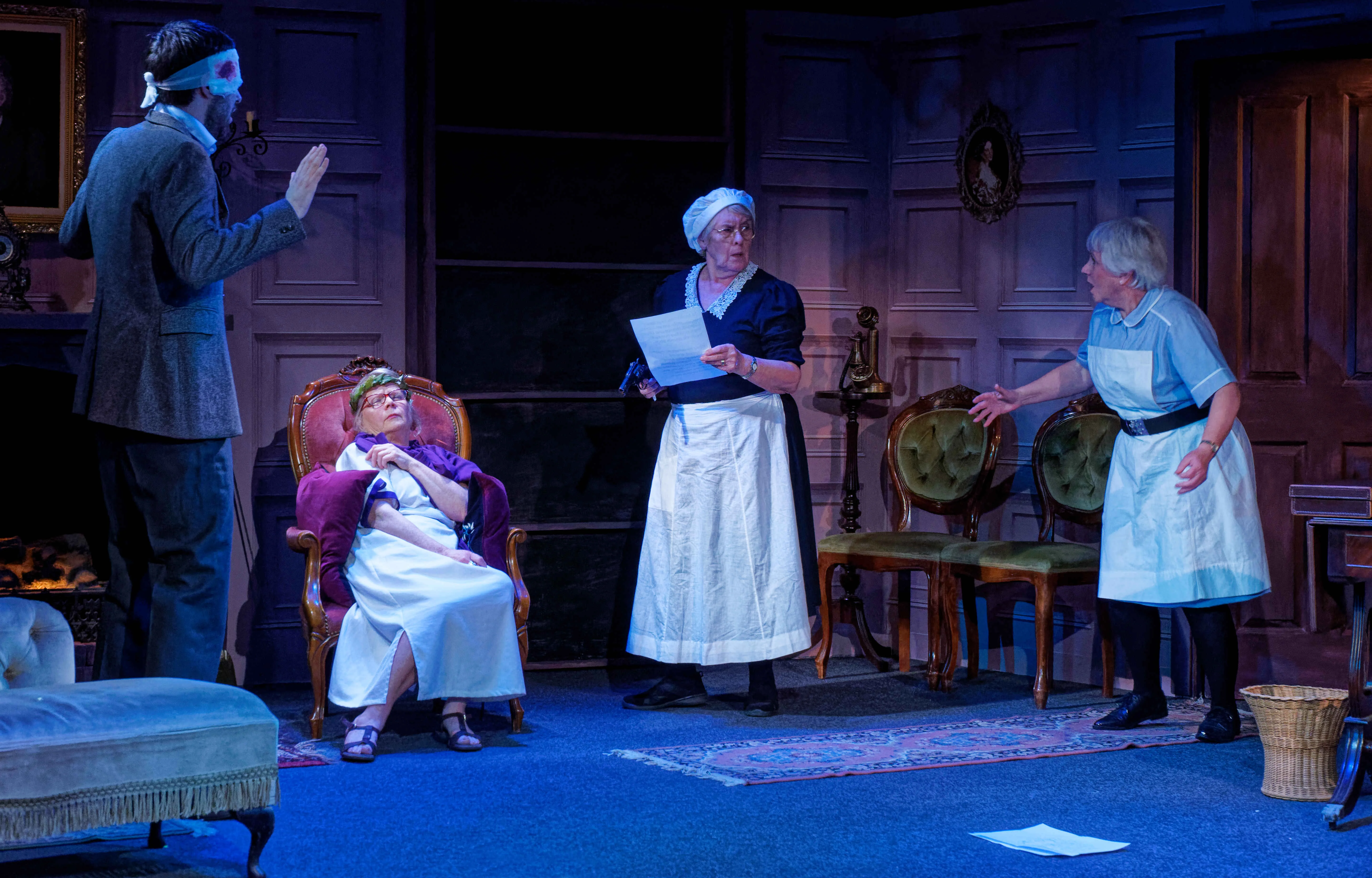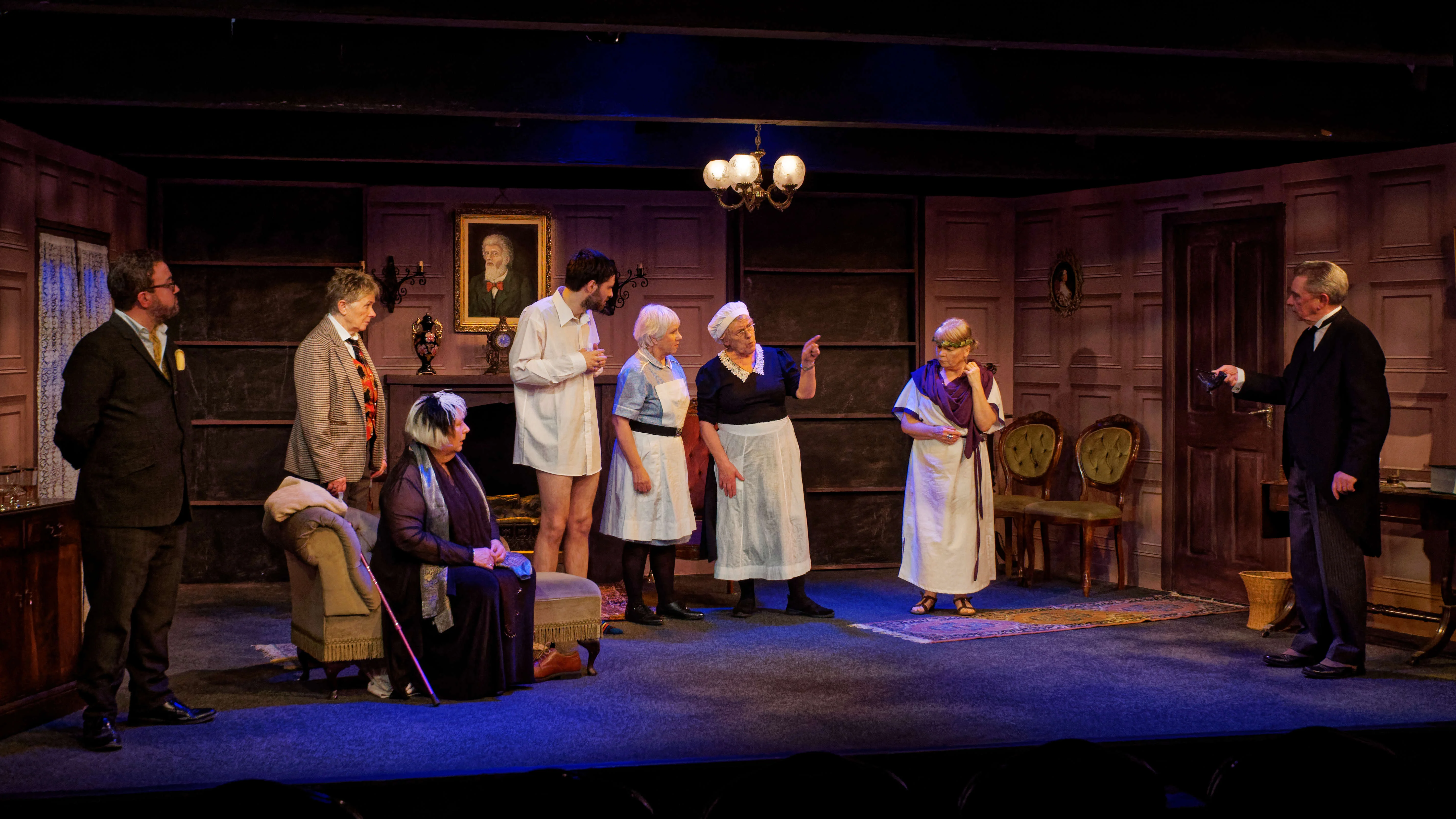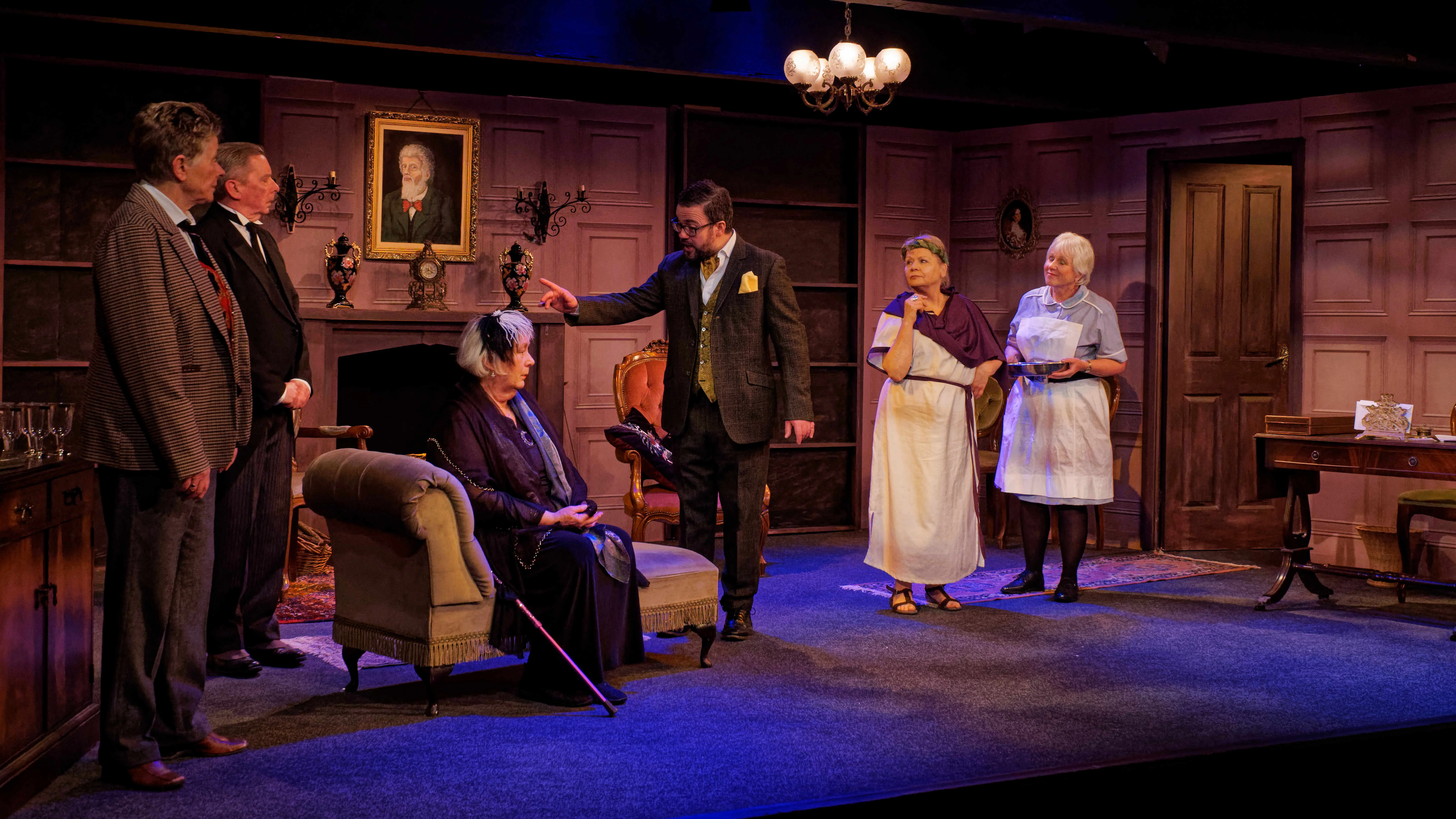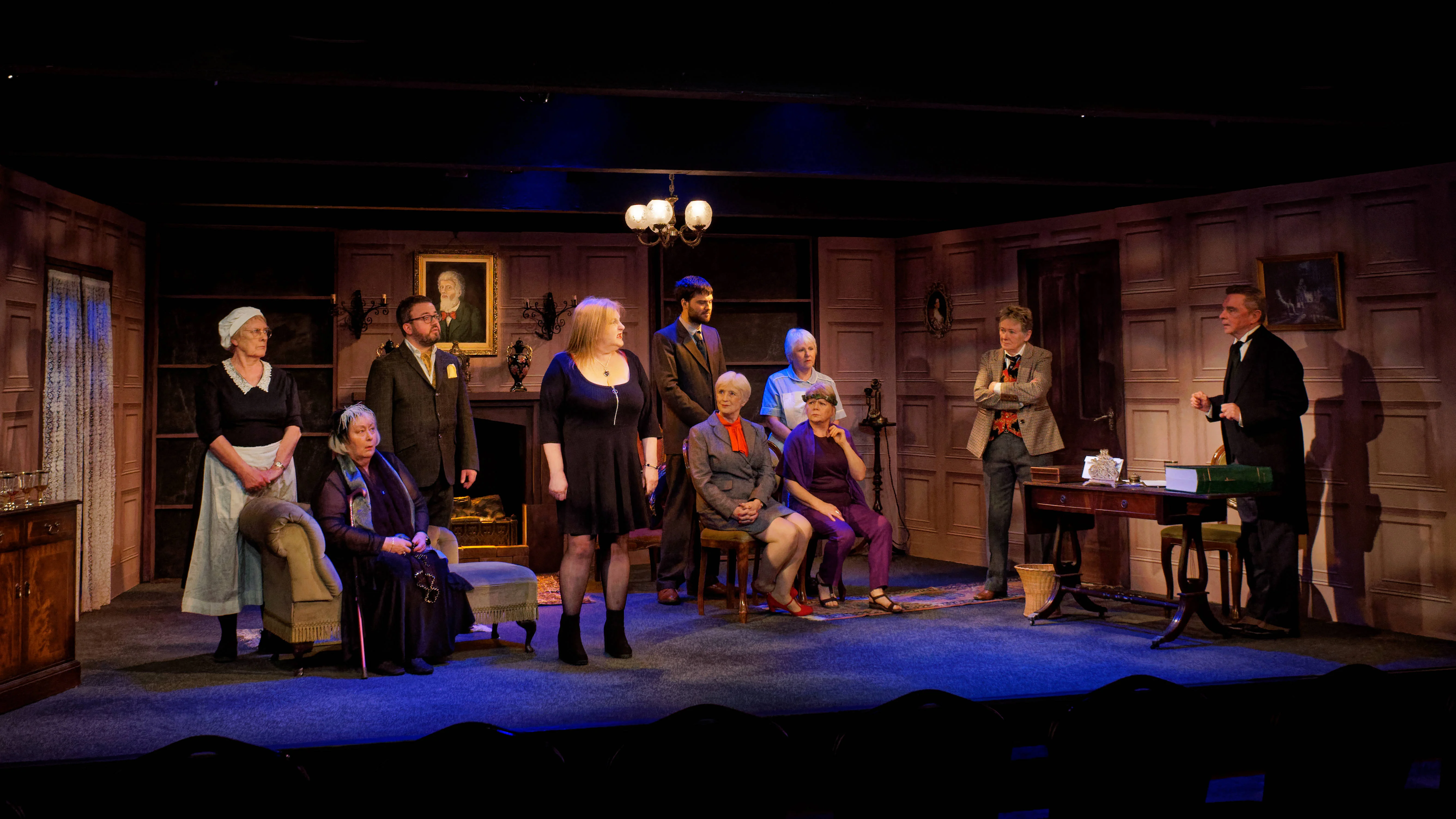 By Norman Robbins. Directed by Martin Dale. Monday 26th February - Friday 1st March 2024 at 8 p.m. Saturday 2nd March at 3 p.m. This comedy thriller is set in as-sinister-an-old-library as one is likely to come across, presided over by a portrait of a grim-faced old man. There, a dusty lawyer reads a will, involving some millions of pounds, to an equally sinister family. One member has werewolf tendencies, another wanders around in a toga of Julius Caesar, and a third member is a gentle old lady who plants more than seeds in the flower beds… By the third act, there are more corpses than live members left in the cast - and what about the sympathetic nurse and the author of romantic novels? Are they all more than they seem to be? All is revealed as the plot twists and turns to its surprising conclusion. The production was a sell-out at Theatre 62.