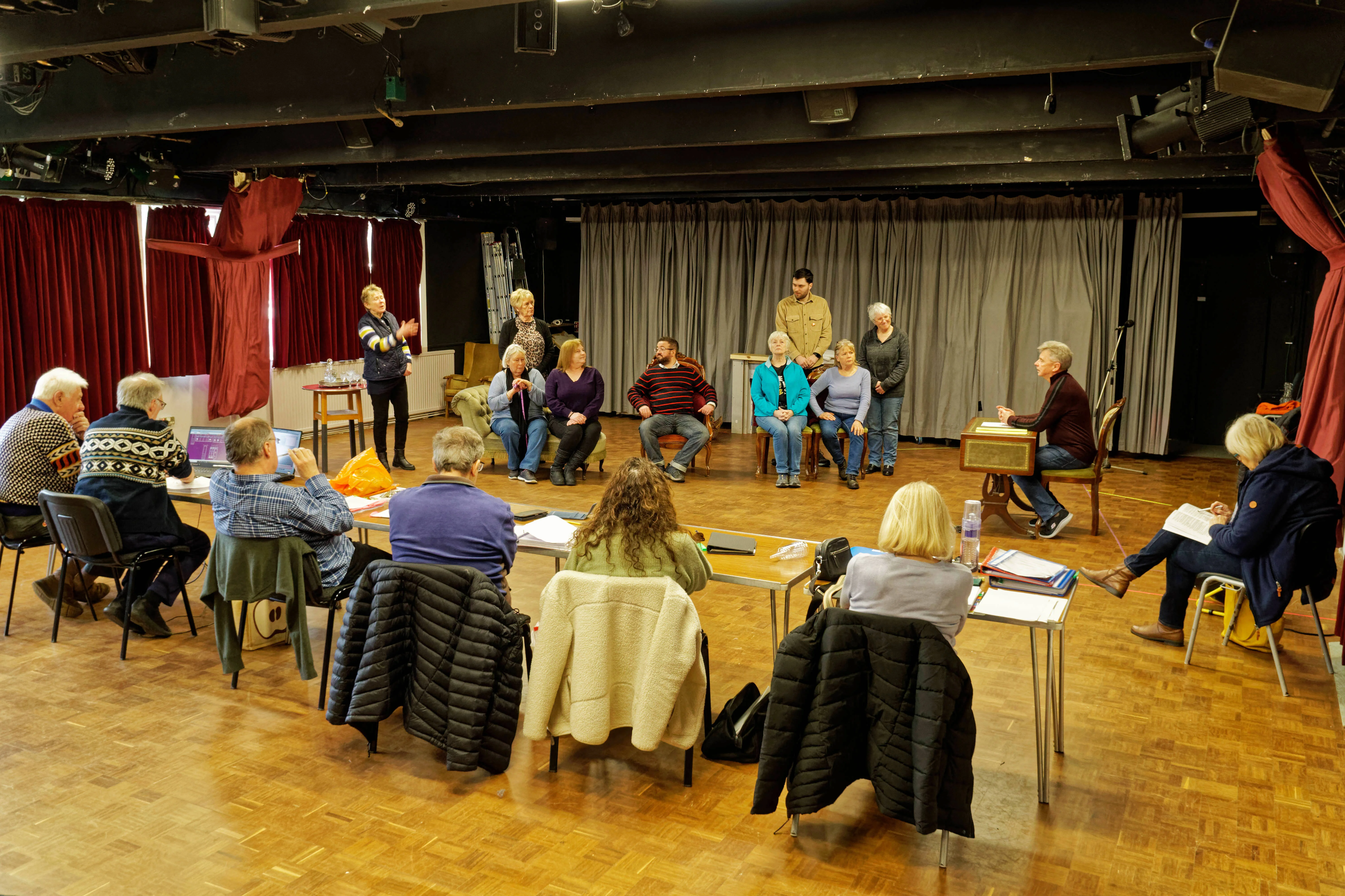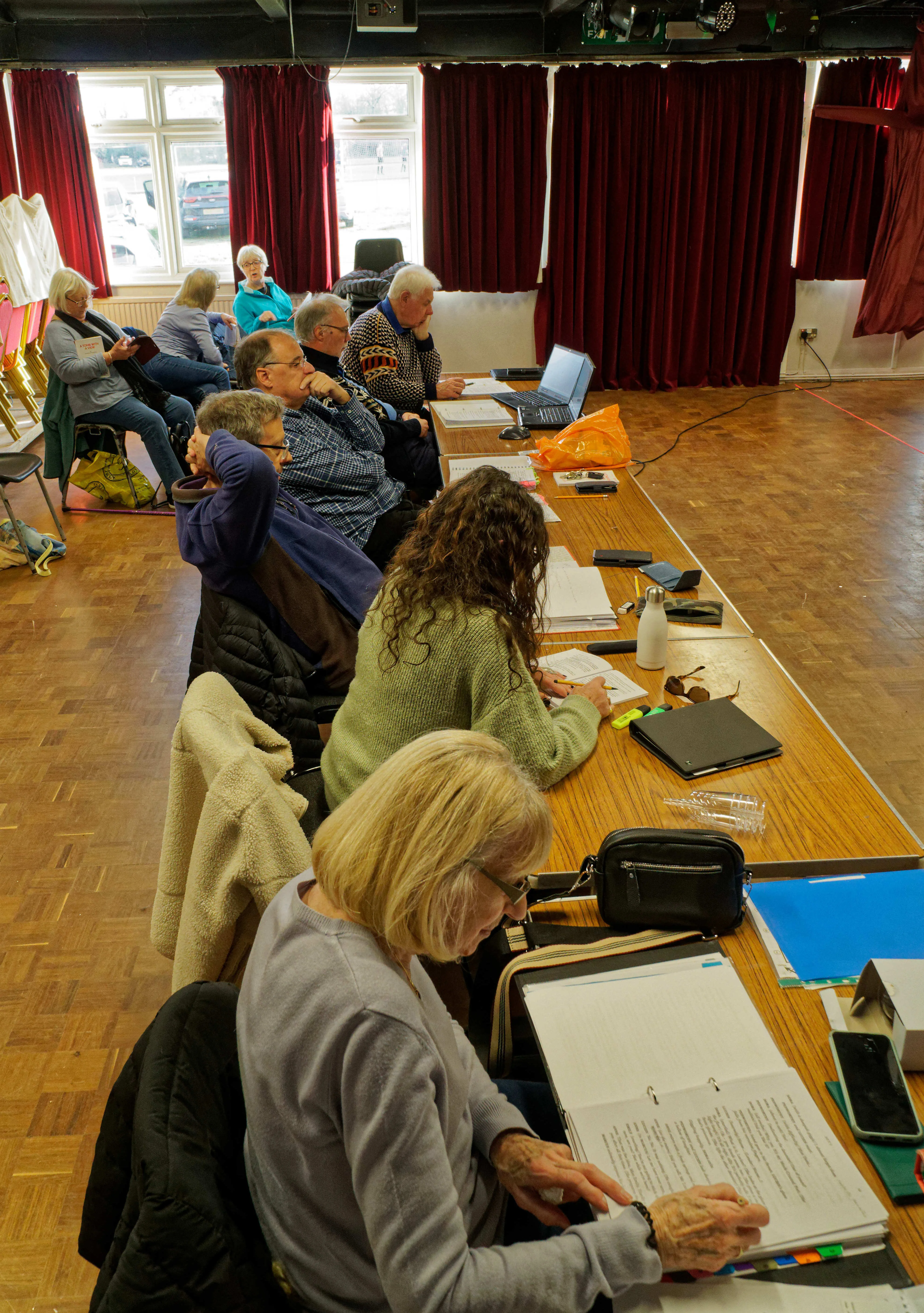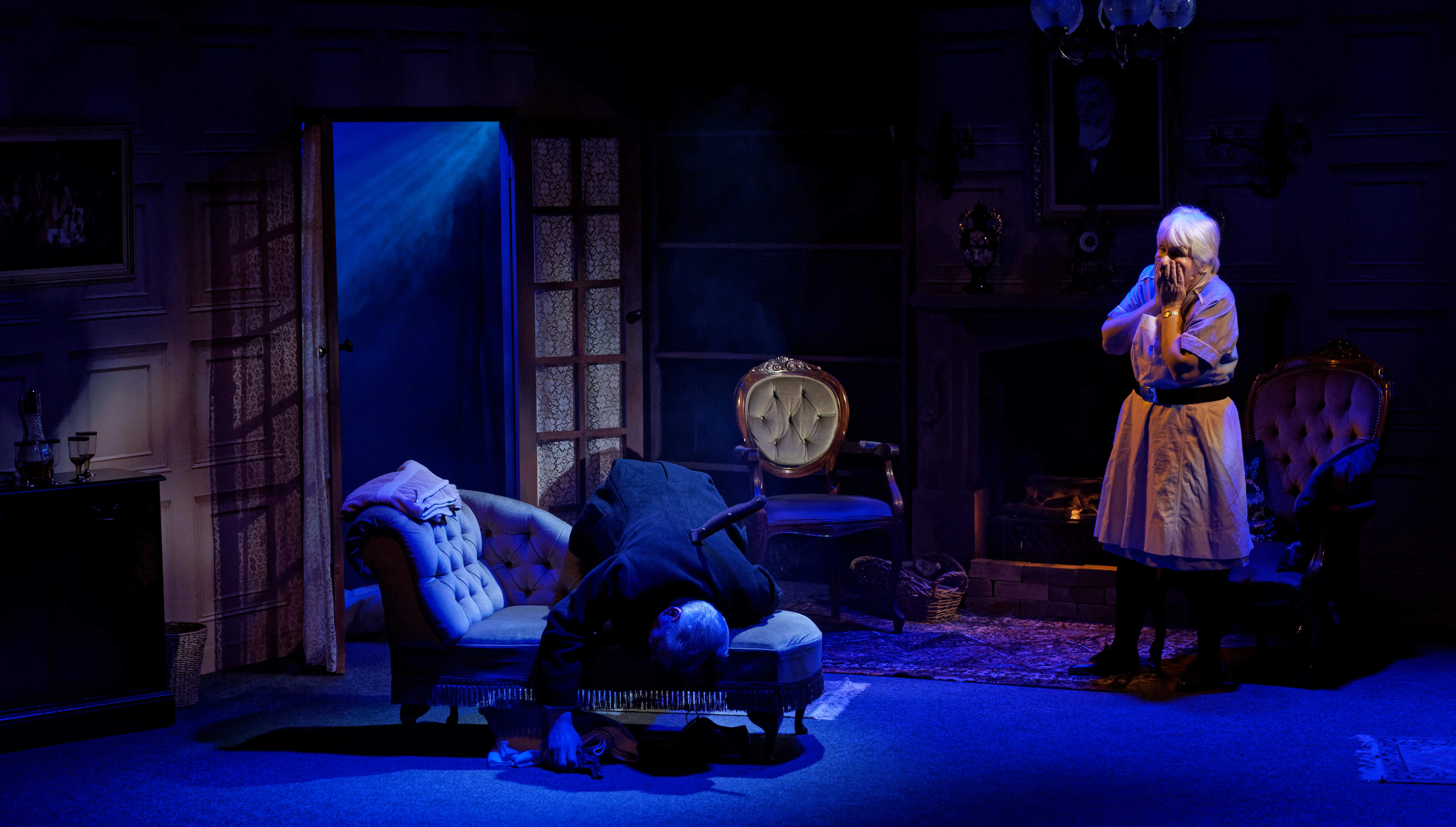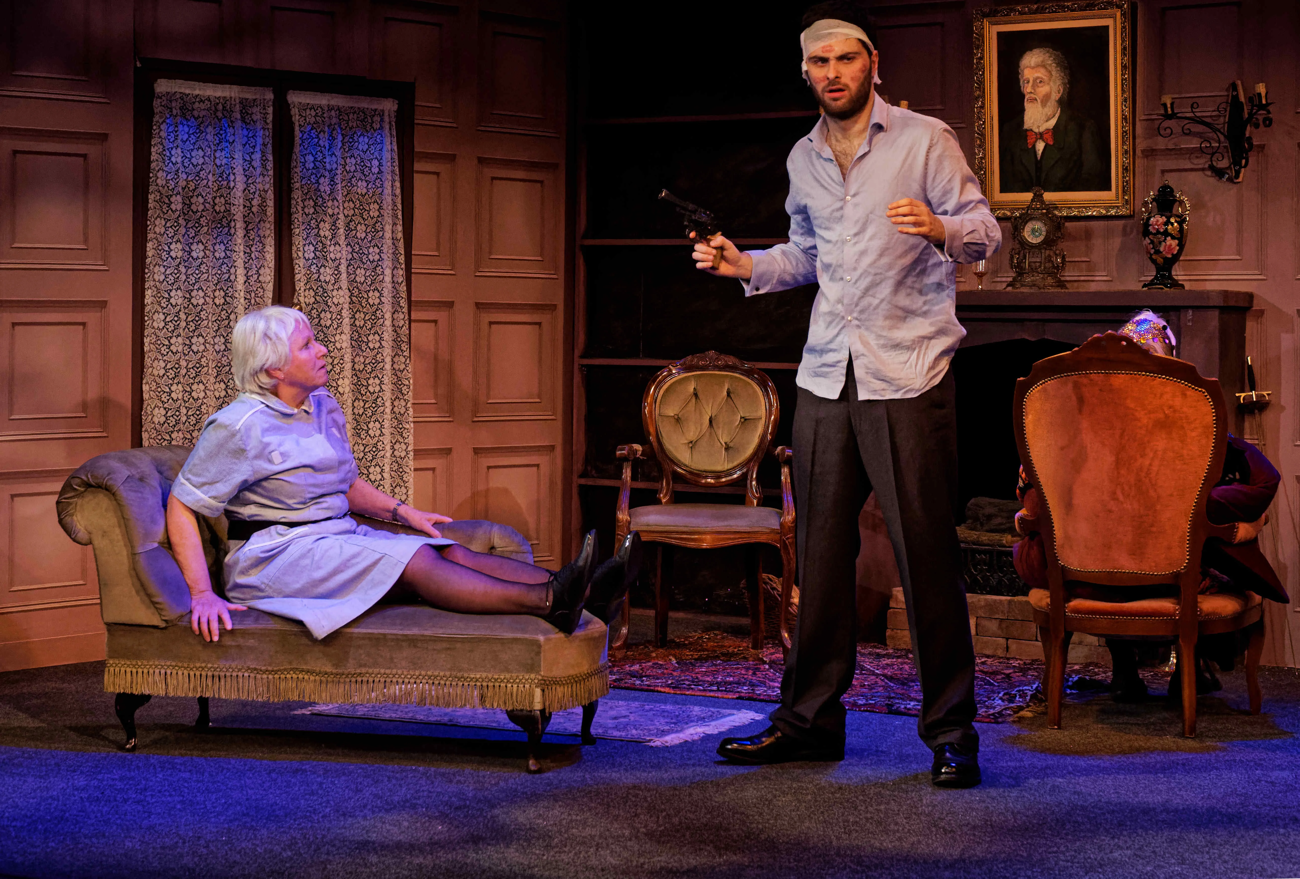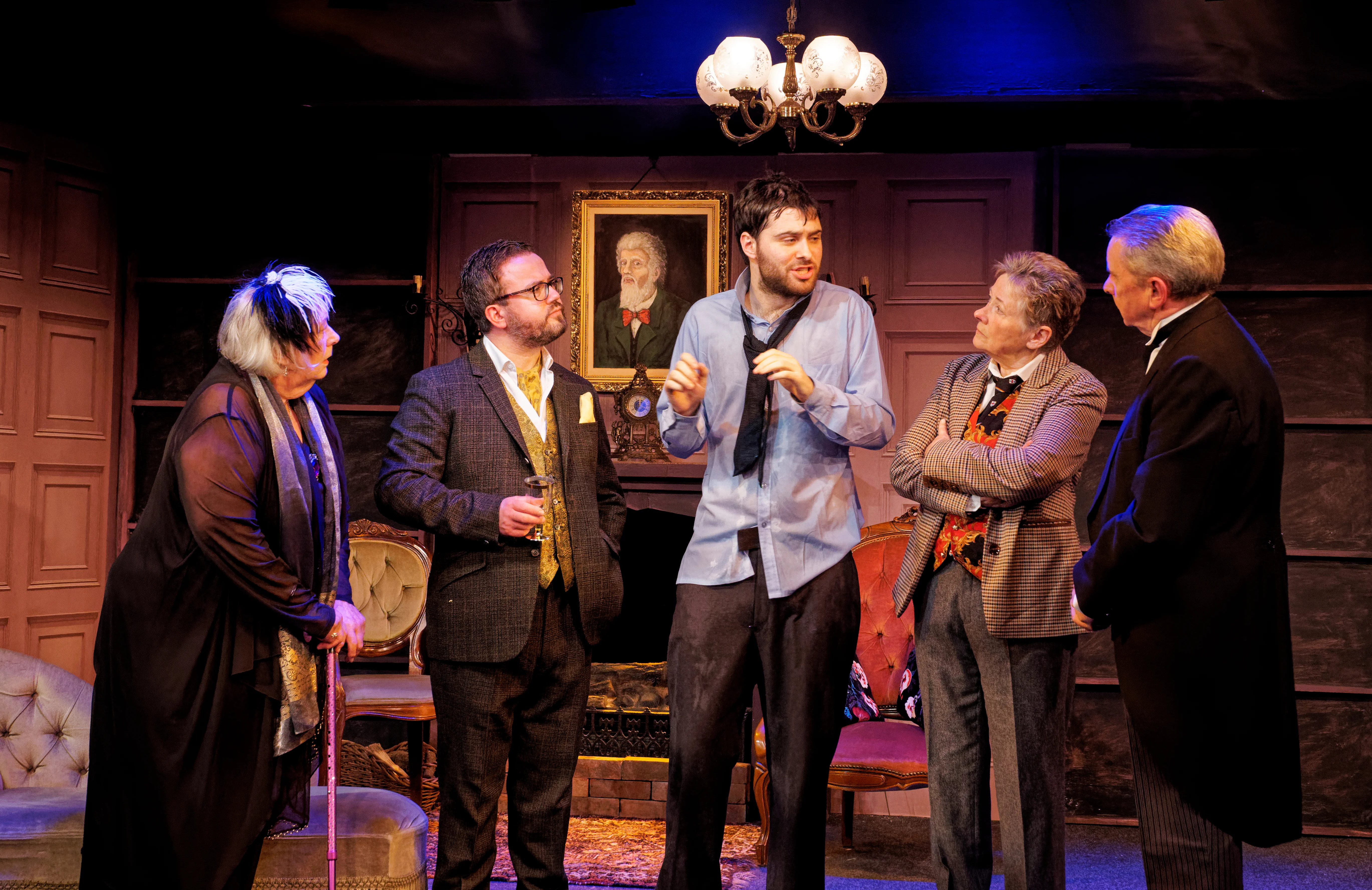 By Norman Robbins. Directed by Martin Dale. Monday 26th February - Friday 1st March 2024 at 8 p.m. Saturday 2nd March at 3 p.m. This comedy thriller is set in as-sinister-an-old-library as one is likely to come across, presided over by a portrait of a grim-faced old man. There, a dusty lawyer reads a will, involving some millions of pounds, to an equally sinister family. One member has werewolf tendencies, another wanders around in a toga of Julius Caesar, and a third member is a gentle old lady who plants more than seeds in the flower beds… By the third act, there are more corpses than live members left in the cast - and what about the sympathetic nurse and the author of romantic novels? Are they all more than they seem to be? All is revealed as the plot twists and turns to its surprising conclusion. The production was a sell-out at Theatre 62.