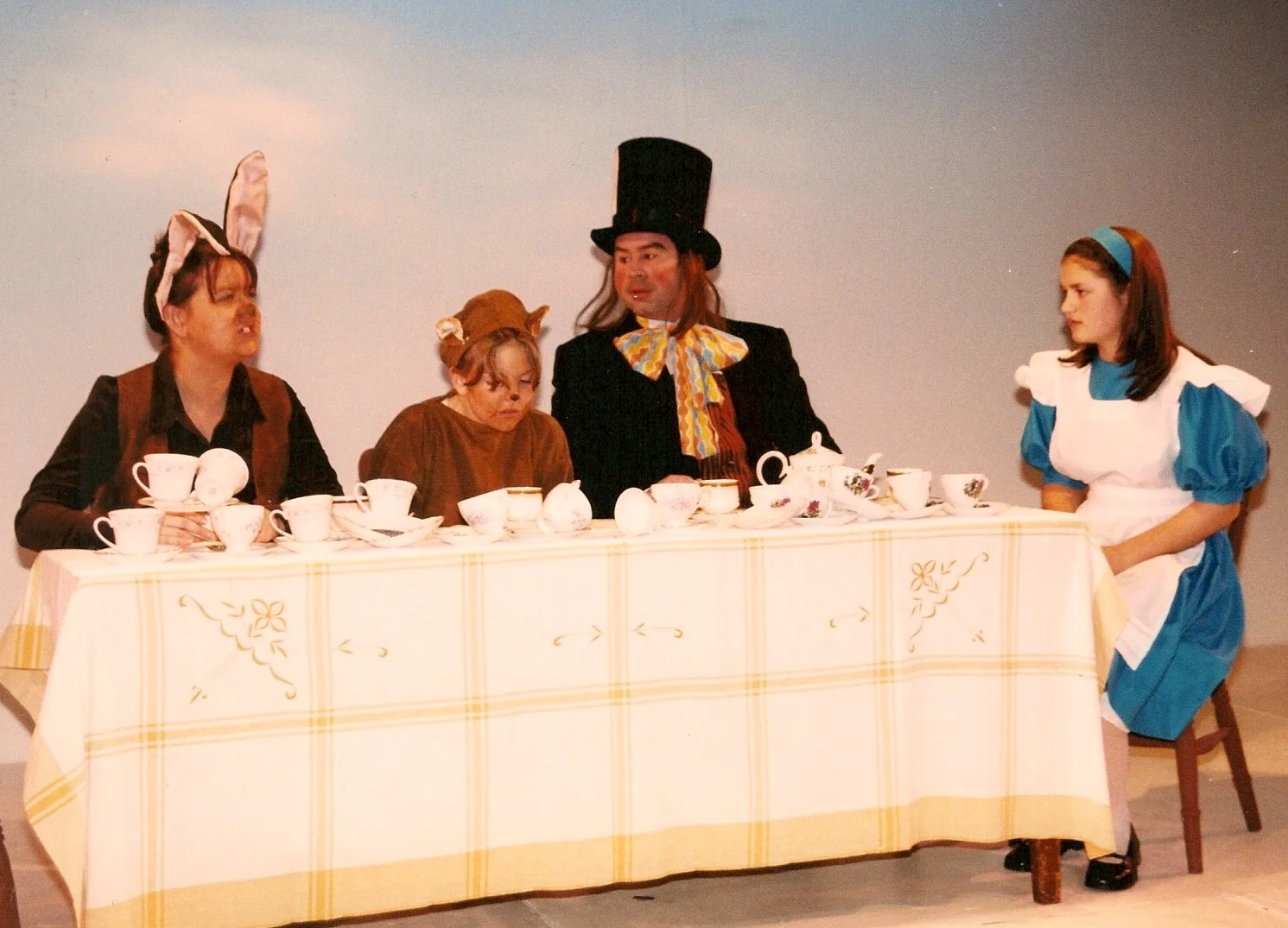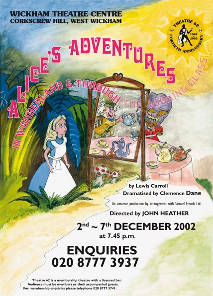 By Lewis Carroll, dramatised by Clemence Dane. Directed by John Heather. Lewis Carroll’s fantastic tales of Alice’s dreamworld of Wonderland, the people she meets including the White Rabbit, Mad Hatter, March Hare. Together with her adventures Through the Looking Glass, she meets similarly well-loved characters. This is a story which enchants adults and children of all ages. This production included a large cast of all ages including twelve members of First Act (which later became known as Dramalab), some of whom appear in future Theatre 62 productions. Photos below
