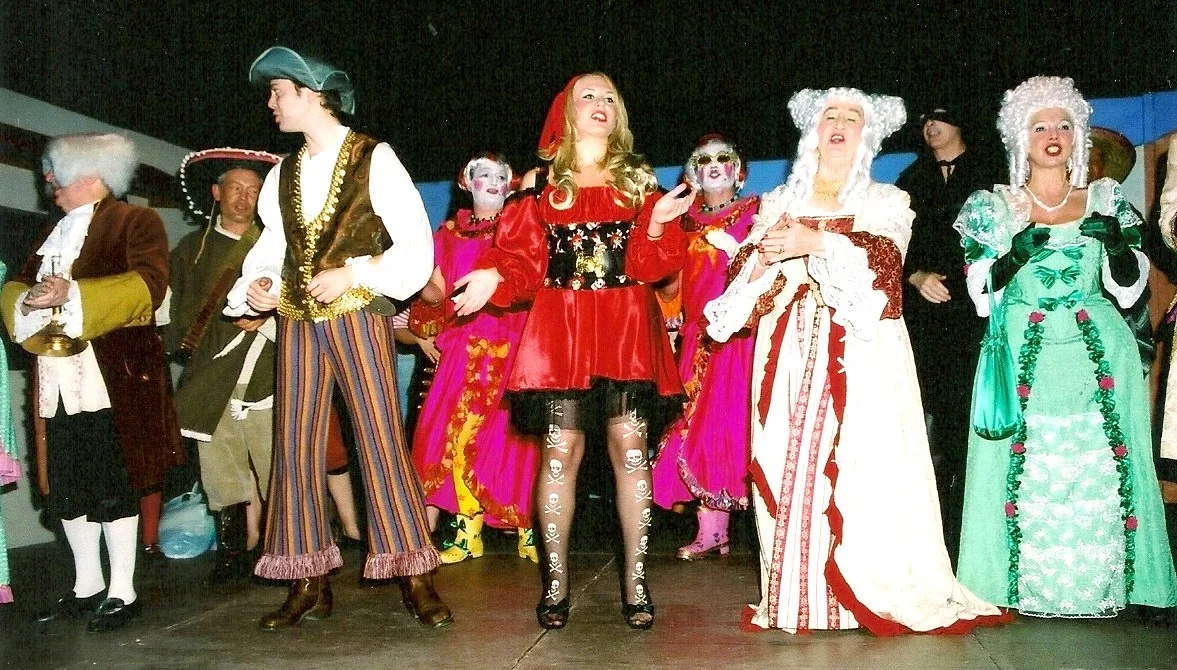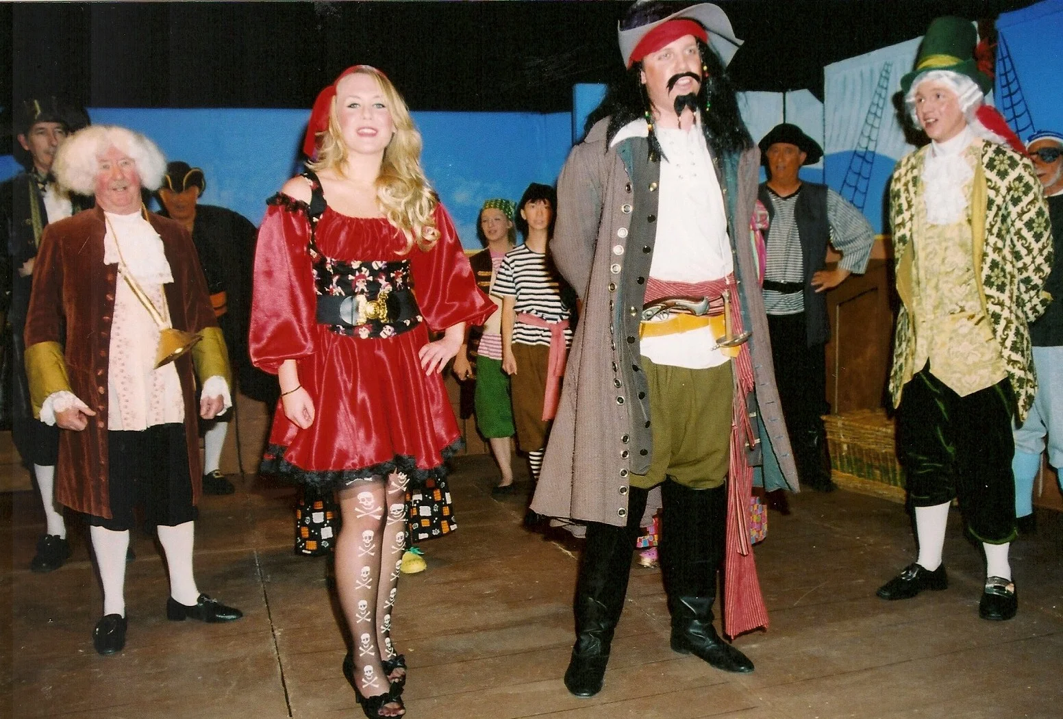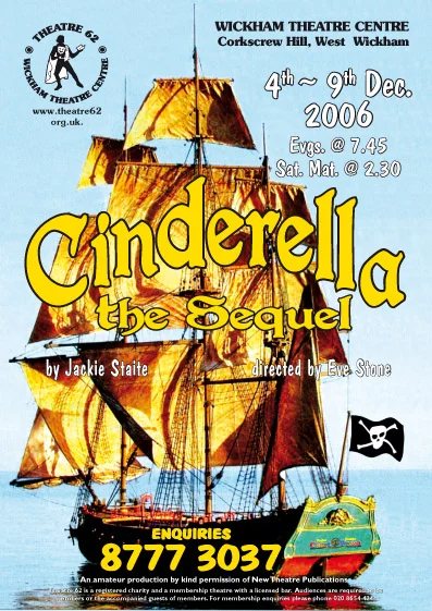 By Jackie Staite. Directed by Eve Stone. Cinderella - The Sequel or How I Ran Away to Join a Pirate Ship and Found True Happiness. After the traditional story of Cinderella, if you want to know what happens next, ‘the sequel’ provides the answer… Cinderella has decided that Prince Charming is too boring to marry, so she runs away to join a pirate ship. However, Baron Hardup, the ugly sisters, the Prince, Dan O'Deeny follow her to bring her back. Along the way Cinderella meets lots of new characters, including a swashbuckling pirate and the Old Man of the Sea. The ship sails to Mexico where pretty girls, bandits and lots more adventures await... Cast (in no particular order): Cinderella: Caroline OlsonBaron Hardup: Dennis PackhamFairy Godmother: Nikki PackhamPrince Charming: Richard StewartDan O'Deeny: Stephen WhalleyGorgeous Gertie: Del StoneDelectable Delia: Nigel LondonStepmother: Muriel KiddPirate Captain: Ian-Paul MundaySecond Mate: Jim JuddMaria/Pirate: Susan AdamOld Man of the Sea: Peter BidwellBandit/Pirate: David KinchFirst Mate/Carlos/Priest: Pieter Jan SwingePirate/Senorita: Jessie GiacomazziMexixan Pedlar/Conchita: Viki JonesIsabella/Pirate: Amy BurnellPedro/Pirate: Gordon WattFlorentine: Lyn ThorpeMargarita/Pirate: Sharon FowlerPress Stud: James NearyMiranda/Pirate: Ruth HamiltonFrench Tart: Sandie CampbellPirate/Senorita: Marie Longhurst