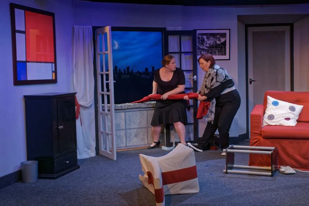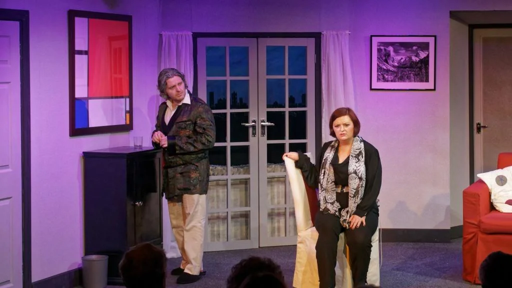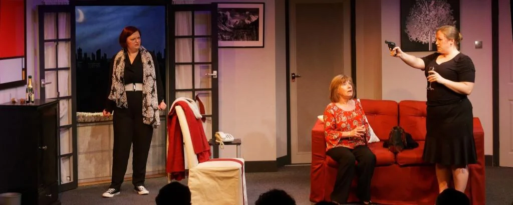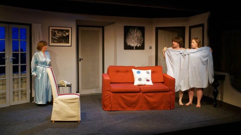 Communicating Doors by Alan Ayckbourn. Directed by Kerry Heywood A dominatrix is hired for an elderly man by the hotel caretaker, but the man doesn't want sexual services. He wants her to witness a confession to the murders of his two previous wives by his psychopathic partner. The dominatrix finds a link through time: can she escape with her own life and go back through time to rescue the wives before they can be killed?