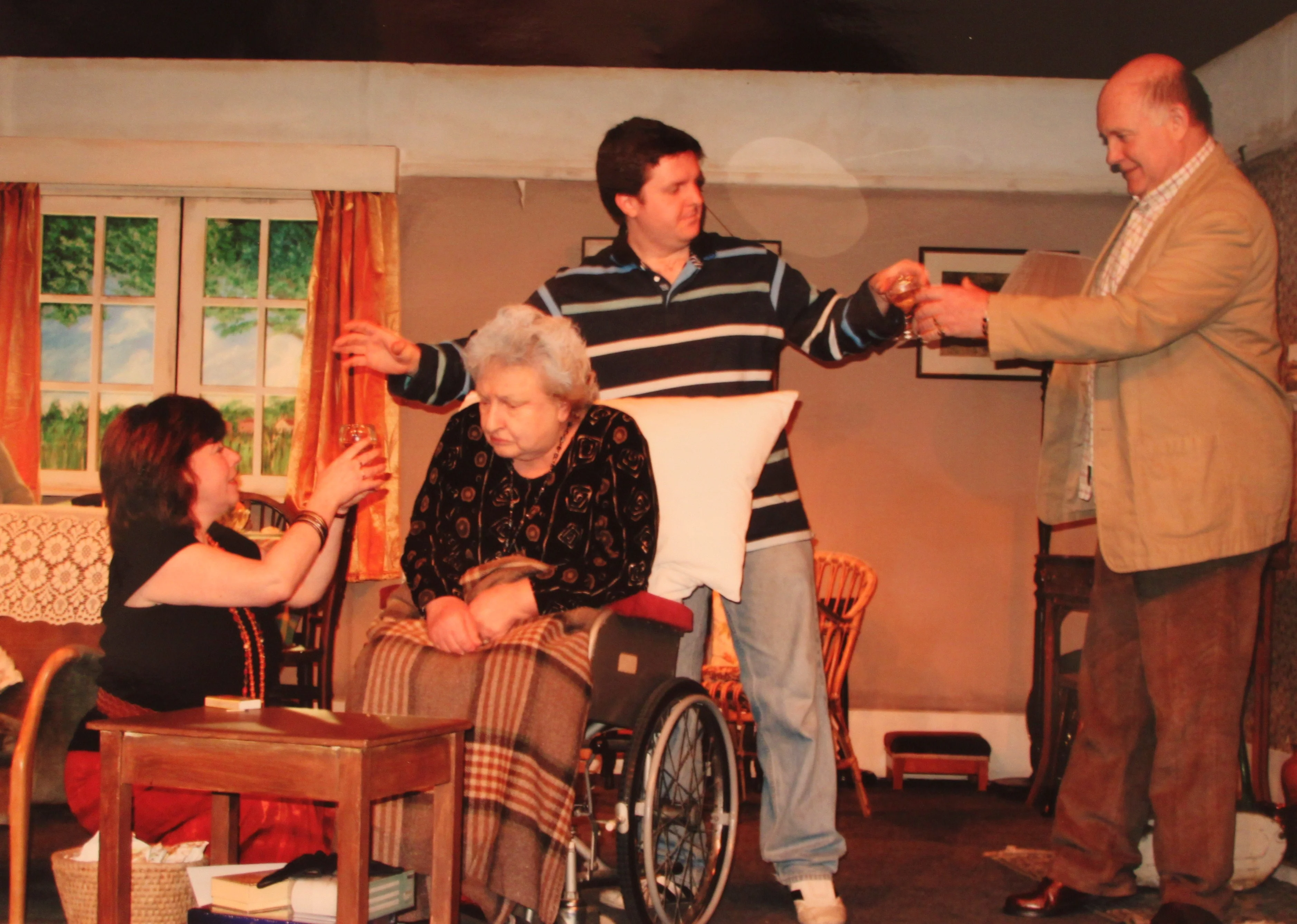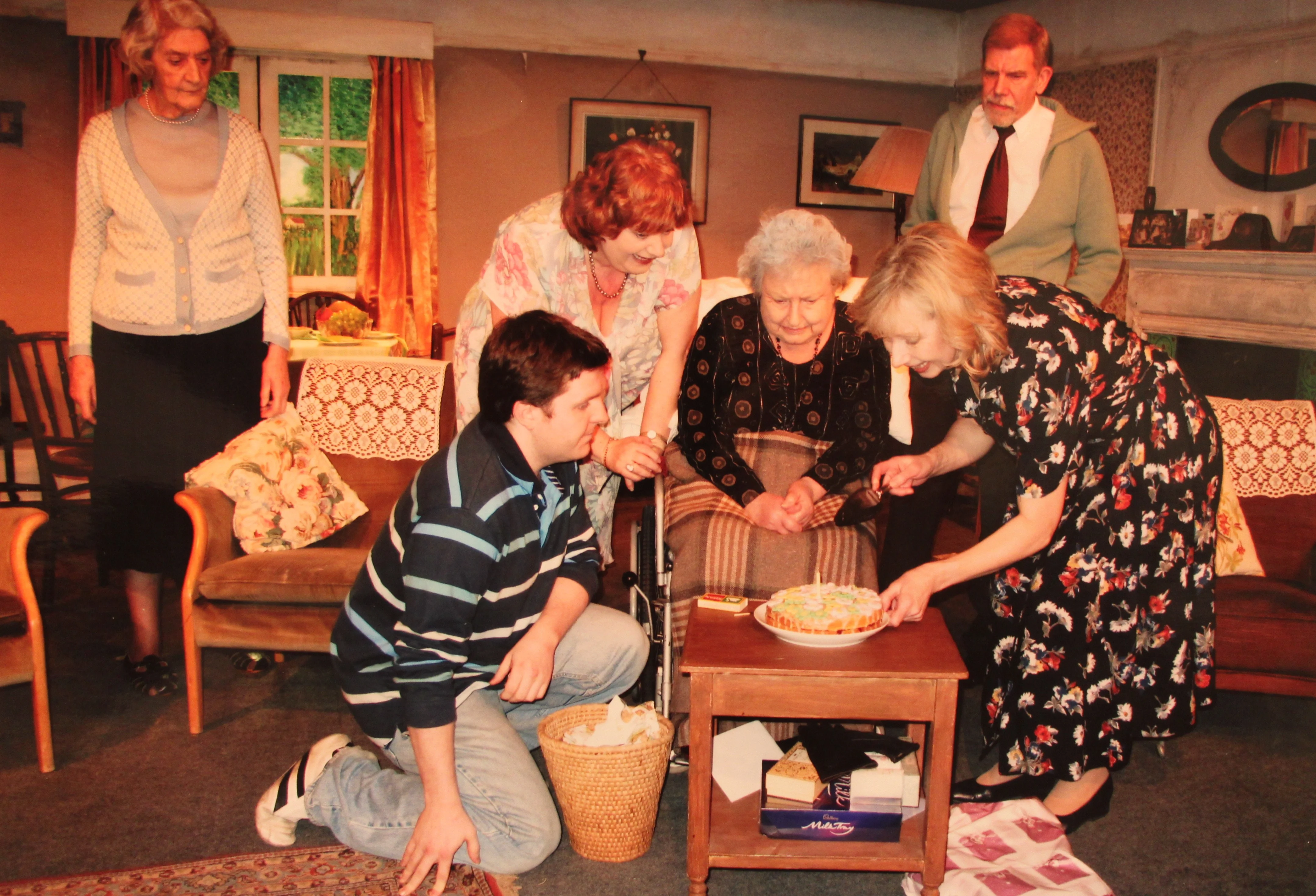By Stephen Bill. Directed by Muriel Kidd. A mother's 86th birthday tea is a desperate affair. She is racked with pain and feels that she has lived too long, and her daughter feels guilty at not being able to help. After the party all the old family prejudices are forced out into the open in a sometimes hilarious, painful and moving picture of a family in turmoil. The action takes place in the back living room of an inner city Victorian House. Time: the 1980s, September.