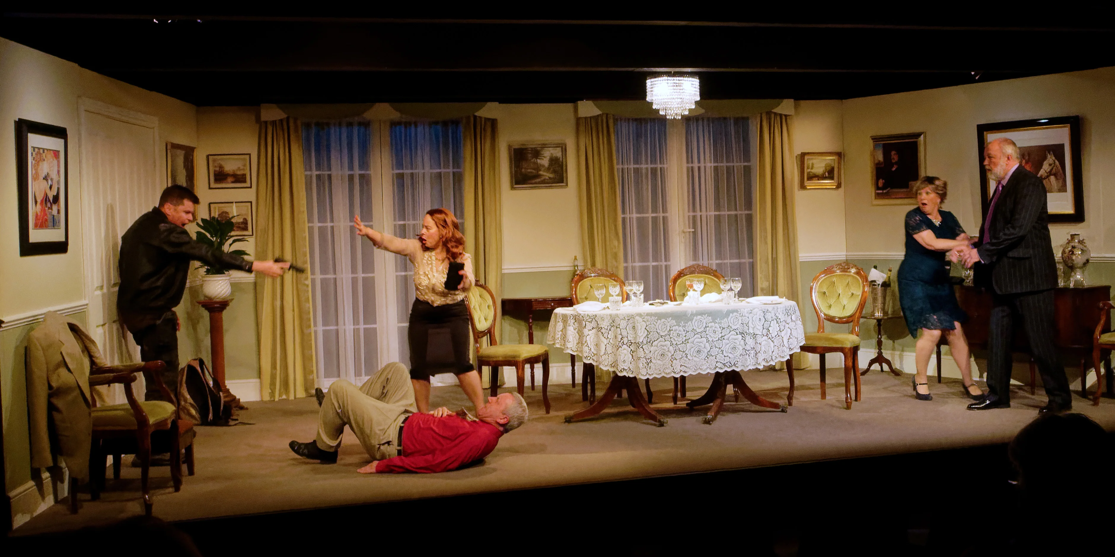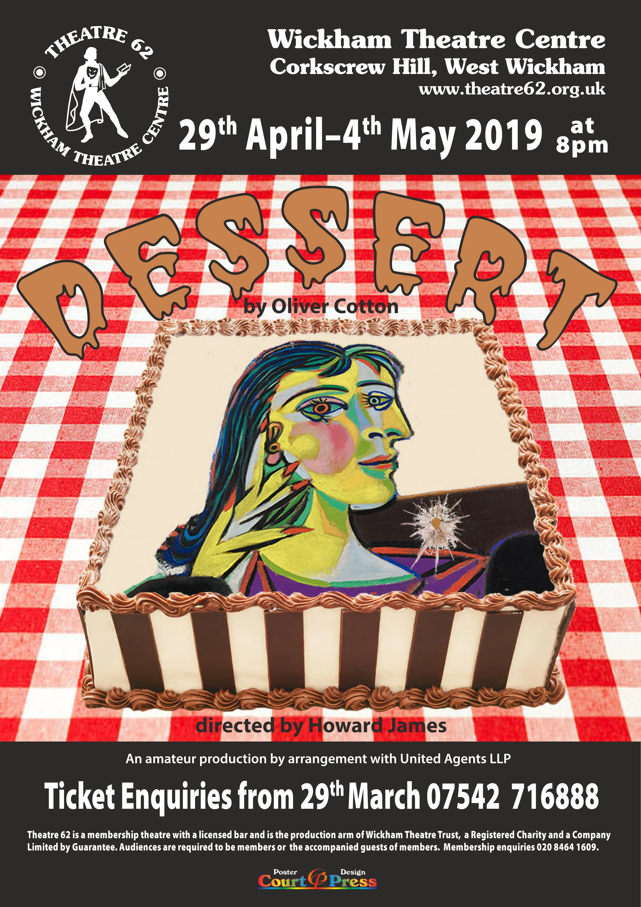 Dessert by Oliver Cotton Directed by Howard James “Dessert is a bit of guilty treat” The Independent, July 2017 This production is Theatre 62's entry in the 2019 Bromley Theatre Guild Full Length Play Festival - and will be the amateur premiere of this play. The play will adjudicated after the performance on Thursday 2nd May. A British financier and his wife host a lavish dinner party for their affluent American friends. The food is delicious, the conversation animated and dessert is on its way - when from one second to another, the evening takes a sinister and alarming turn… With dark comic moments and unexpected twists, this is a powerful, thought-provoking play about wealth, greed and the lengths to which people will go to claim what’s theirs
