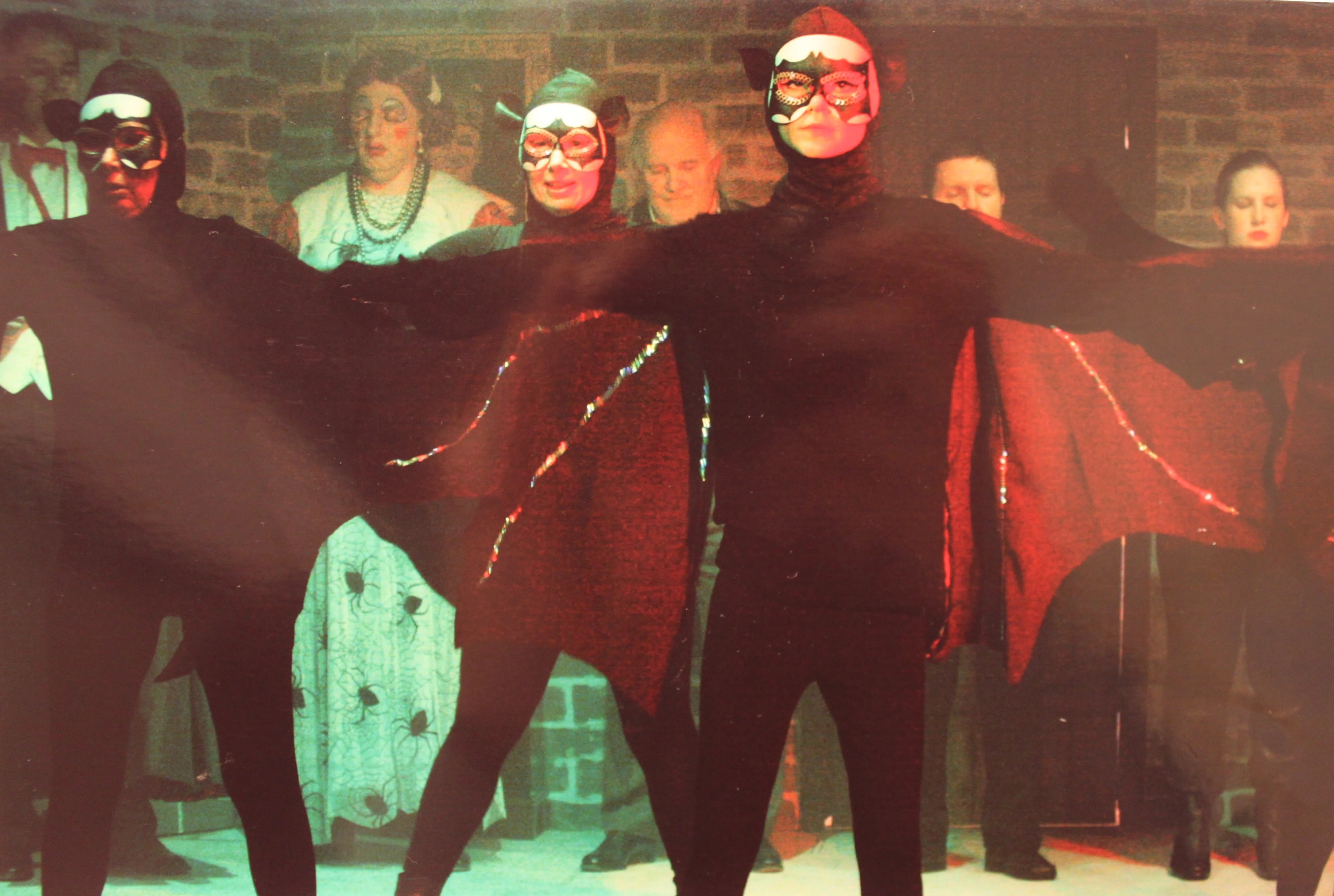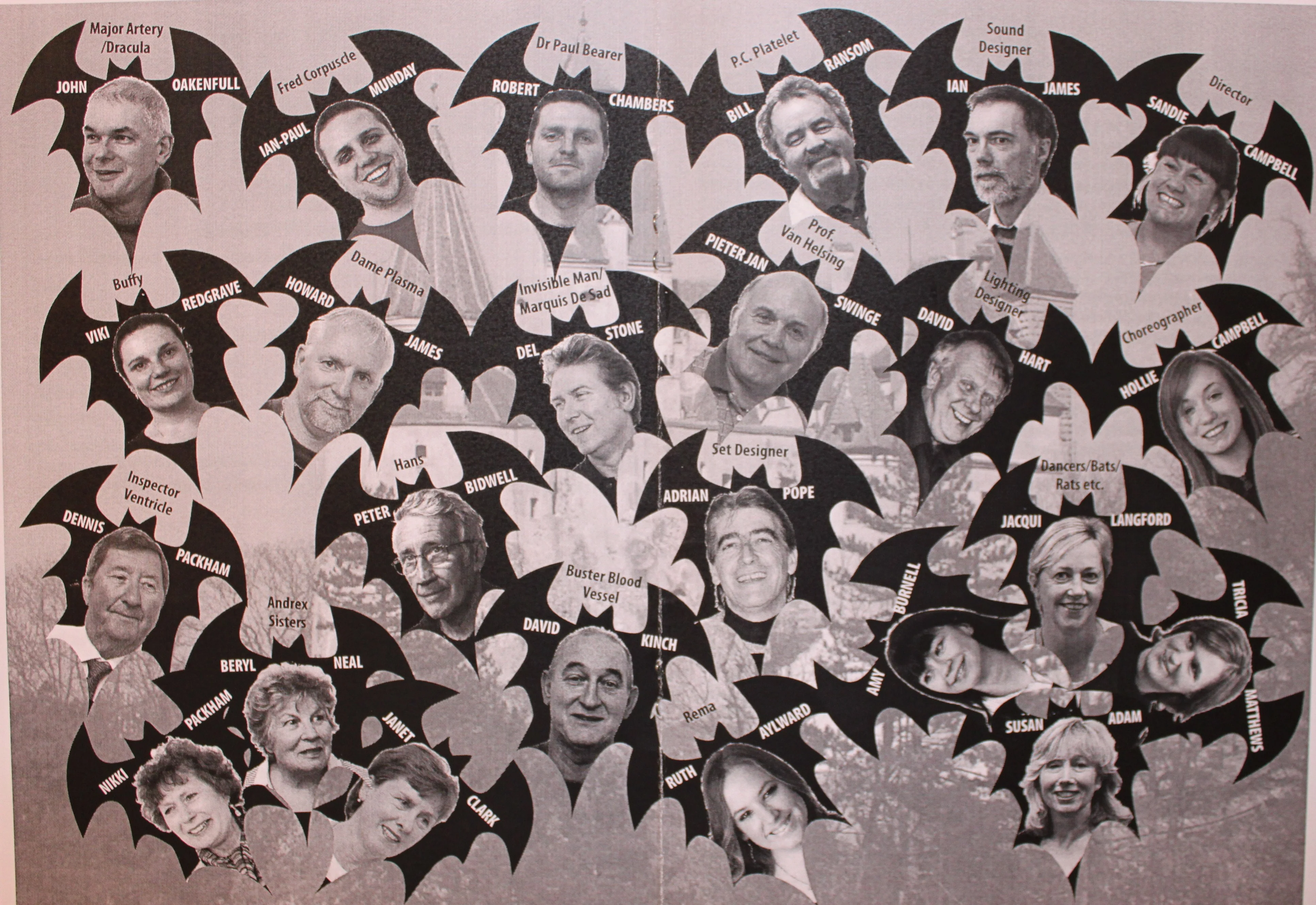 By David Williams, directed by Sandie Campbell As at 2022, this was Theatre 62's last pantomime. CastDracula John OakenfullDame Plasma Howard JamesBuffy Vikki RedgraveFred Ian-Paul MundayRema Ruth AylwardDr Paul Bearer Rob ChambersProf Van Helsing Pieter SwingeMarquise de Sade Del StoneBuster Blood Vessell David KinchHans Peter BidwellAndrex Sisters Nikki Packham, Janet Clark, Heather LondonInspector Ventrical Dennis PackhamP C Platelet Bill RansomExtra Bat Rebecca LuckingBat Amy BurnellBat Patricia MatthewsBat Sue Adams BackstageChoreographer: Hollie CampbellLighting Design: David HartSound Design: Ian JamesSet Design: Adrian PopeStage Director: Bernard HemsleySpecial construction: Chris CampbellStage Manager: Liane MarchantAsst Stage Manager: Rachel CormicanAccompanist: Sarah TalatLighting Assistant: Mike WalkerSound Programmer: Jon LewisProps: Beryl NealWardrobe: Margaret Uzzell, Valerie PolydorouMake-up & hair: Jean Golder, Christine Lever, Penny VetterleinPrompt: Mary Ransom House Manager: John HeatherRefreshments: Nina JamesRaffle: Sandie Campbell, Liane MarchantBox Office: Margaret UzzellPoster/programme design: Graham CopelandProgramme Editor: John Guttridge