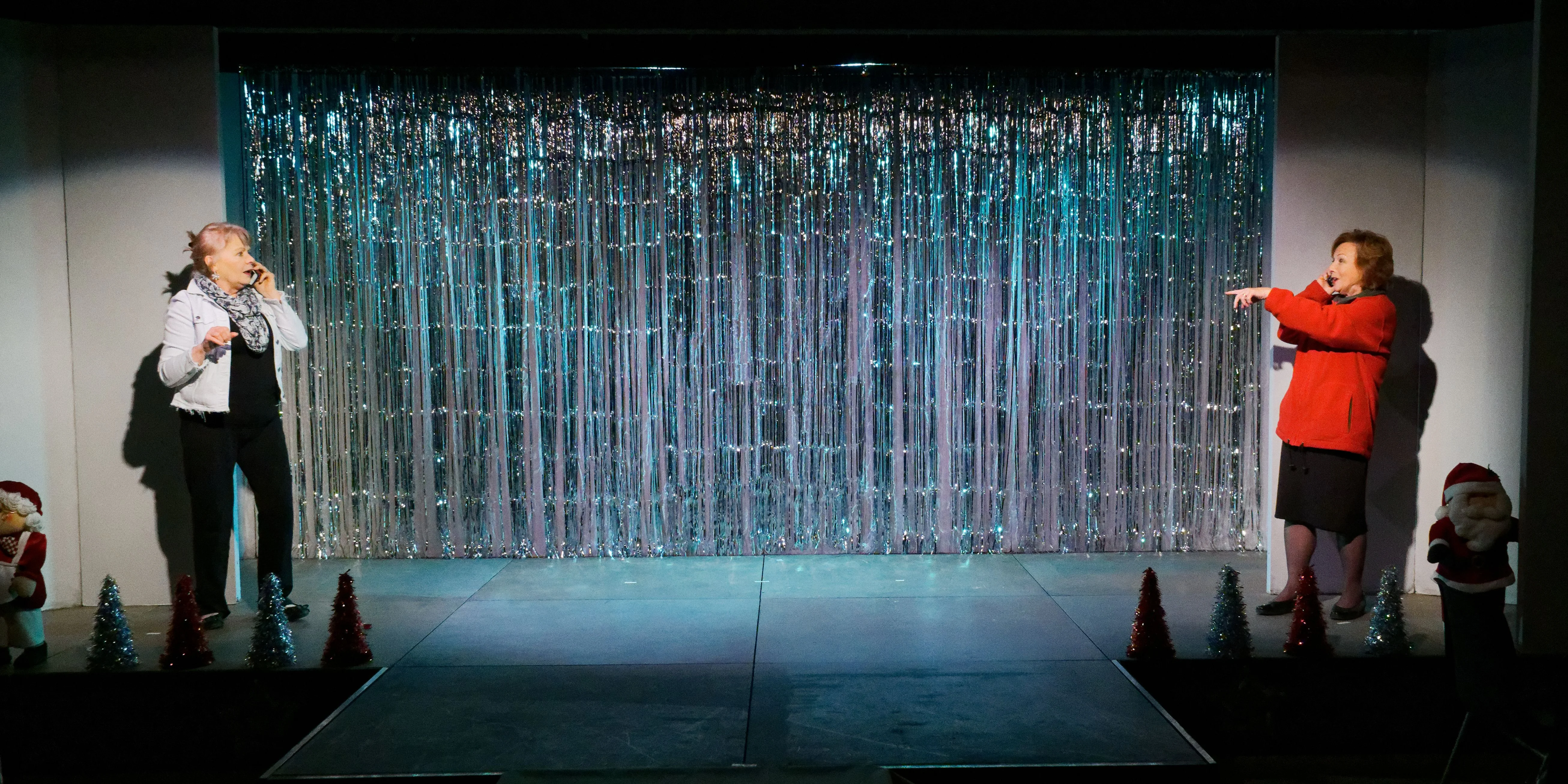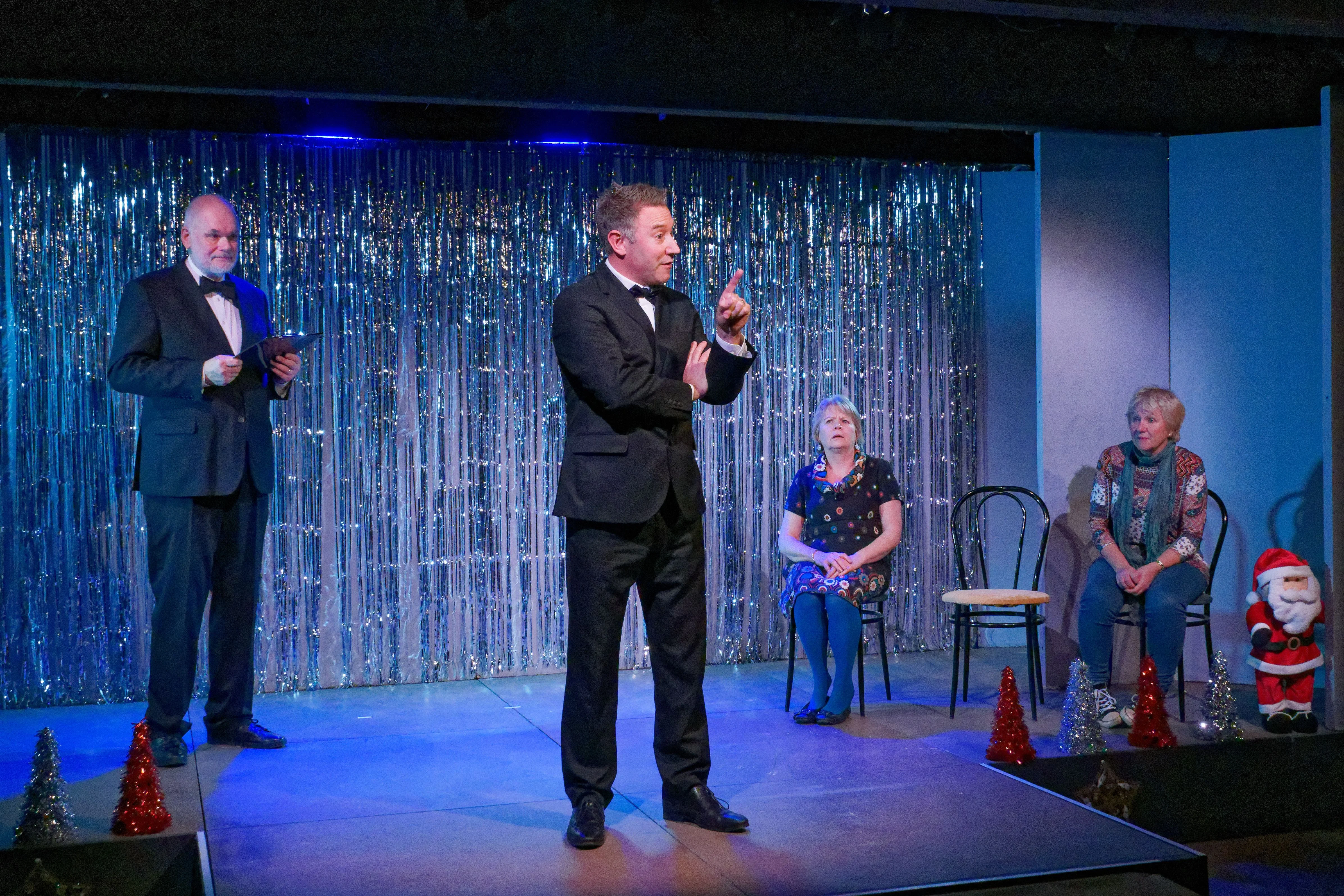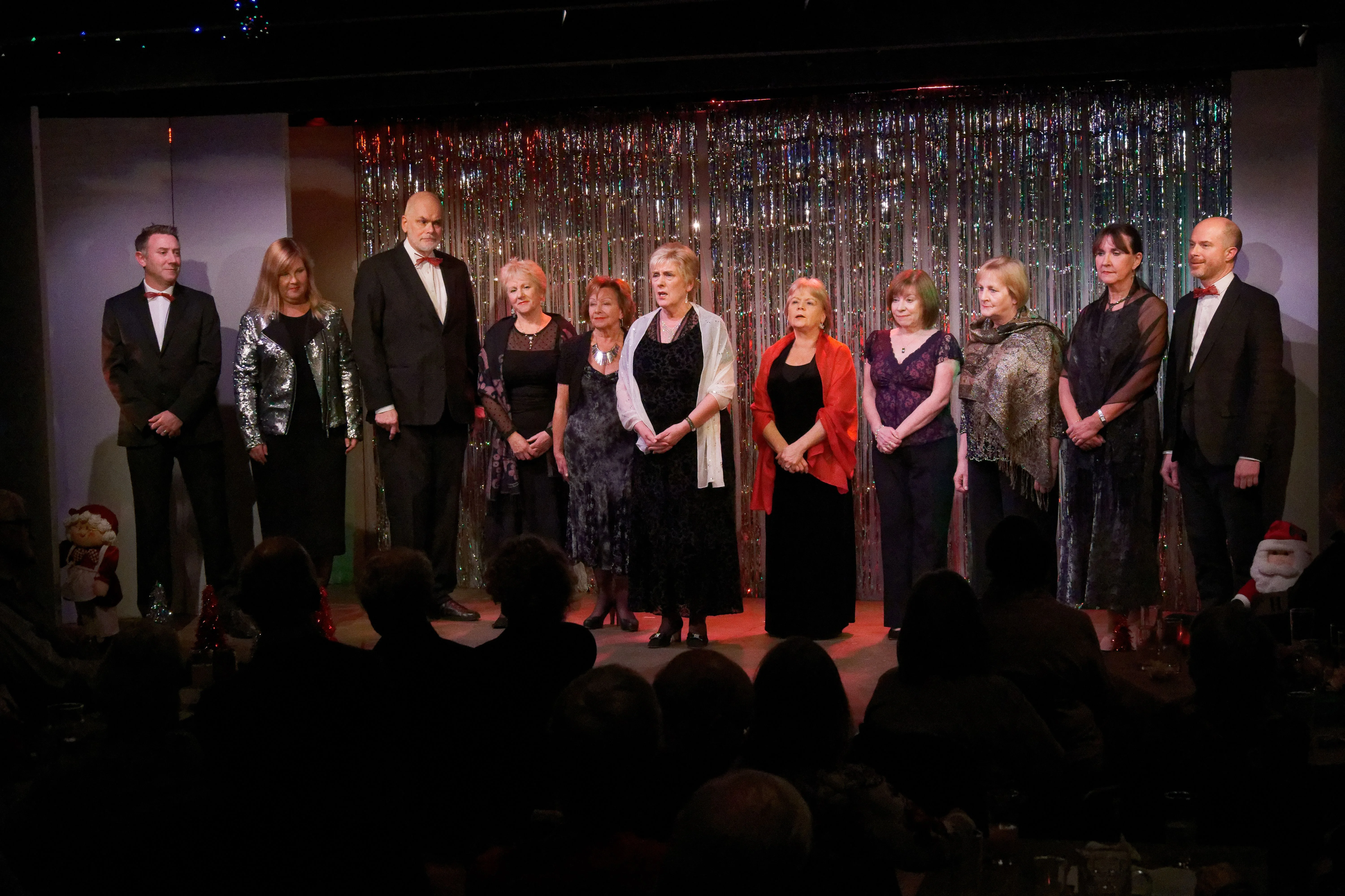Directed by Nikki Packham, Theatre 62 proudly presented its Christmas Revue, alongside a light supper, from Wednesday 4th to Saturday 7th December 2019. Friends gathered for an evening of mayhem and merriment, with a sprinkle of Sparkle and a touch of Tinsel, as eleven actors performed sketches, poems, songs and bite-size pieces of festive fancy, all for the audience's delight. The ensemble: Janet ClarkDiane EbdenJanet EddenMargaret GlennMary-Rose GoodliffeMargaret HeySue HicksPaul NewtonJohn OakenfullStuart ScottJan Stockwell