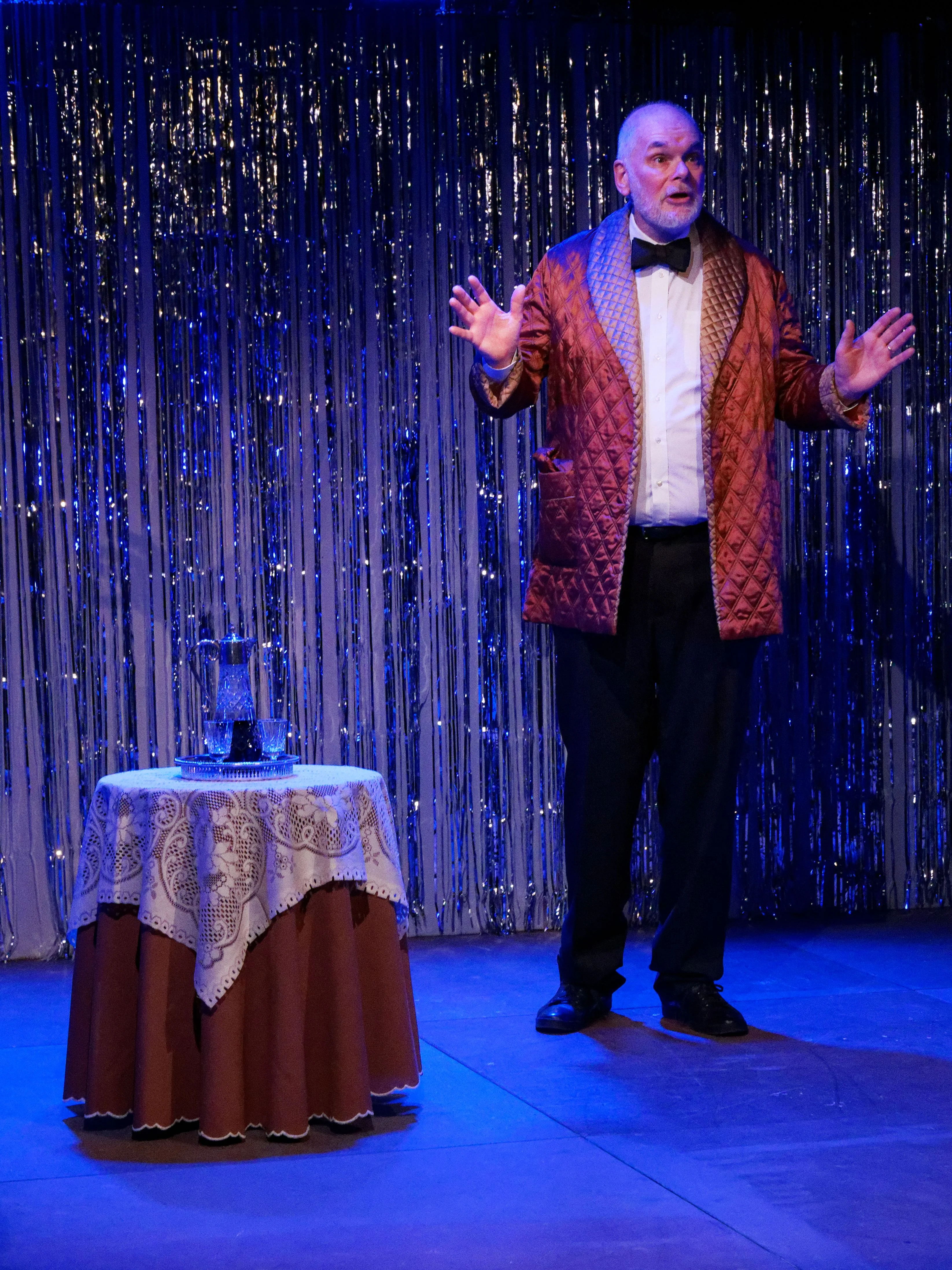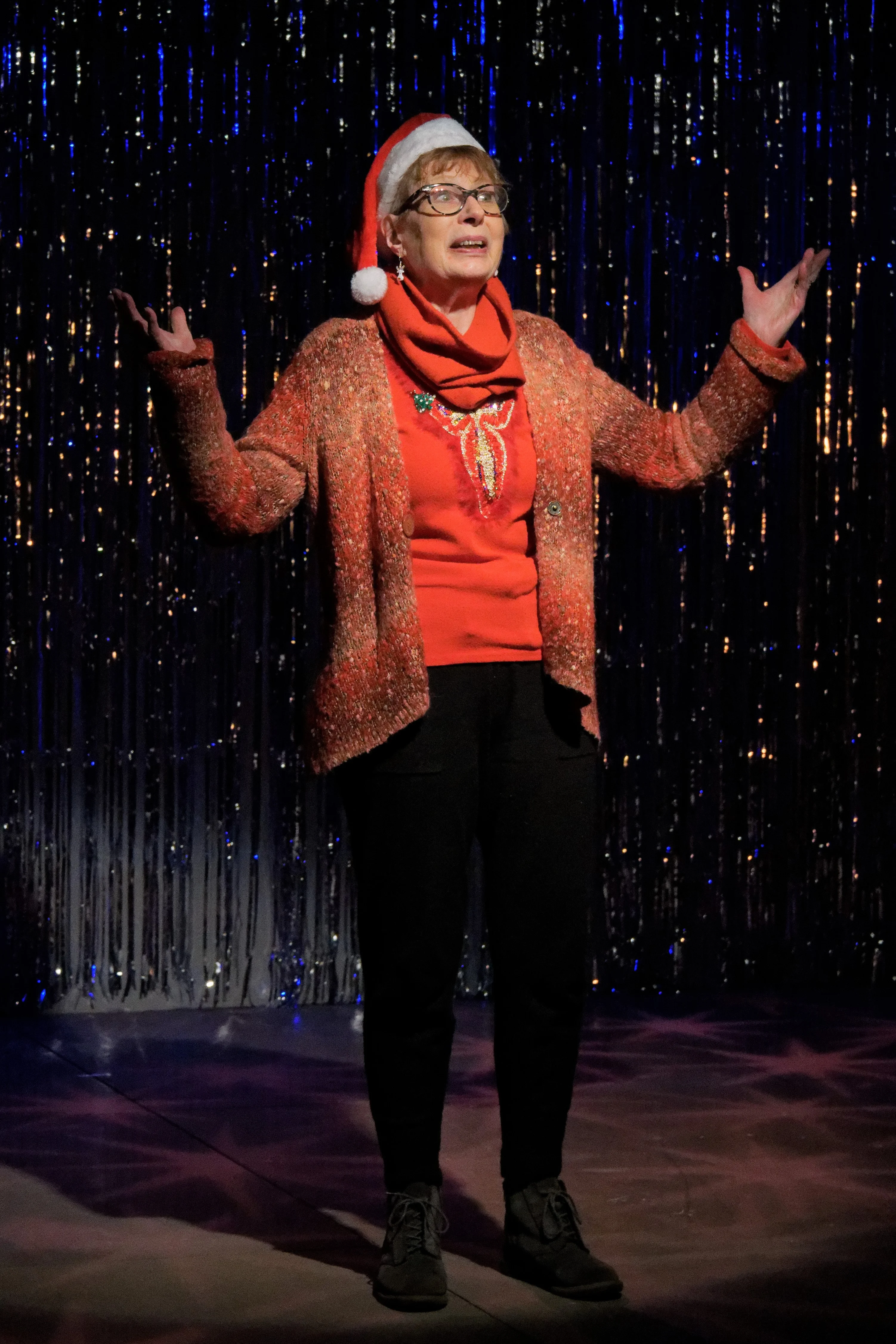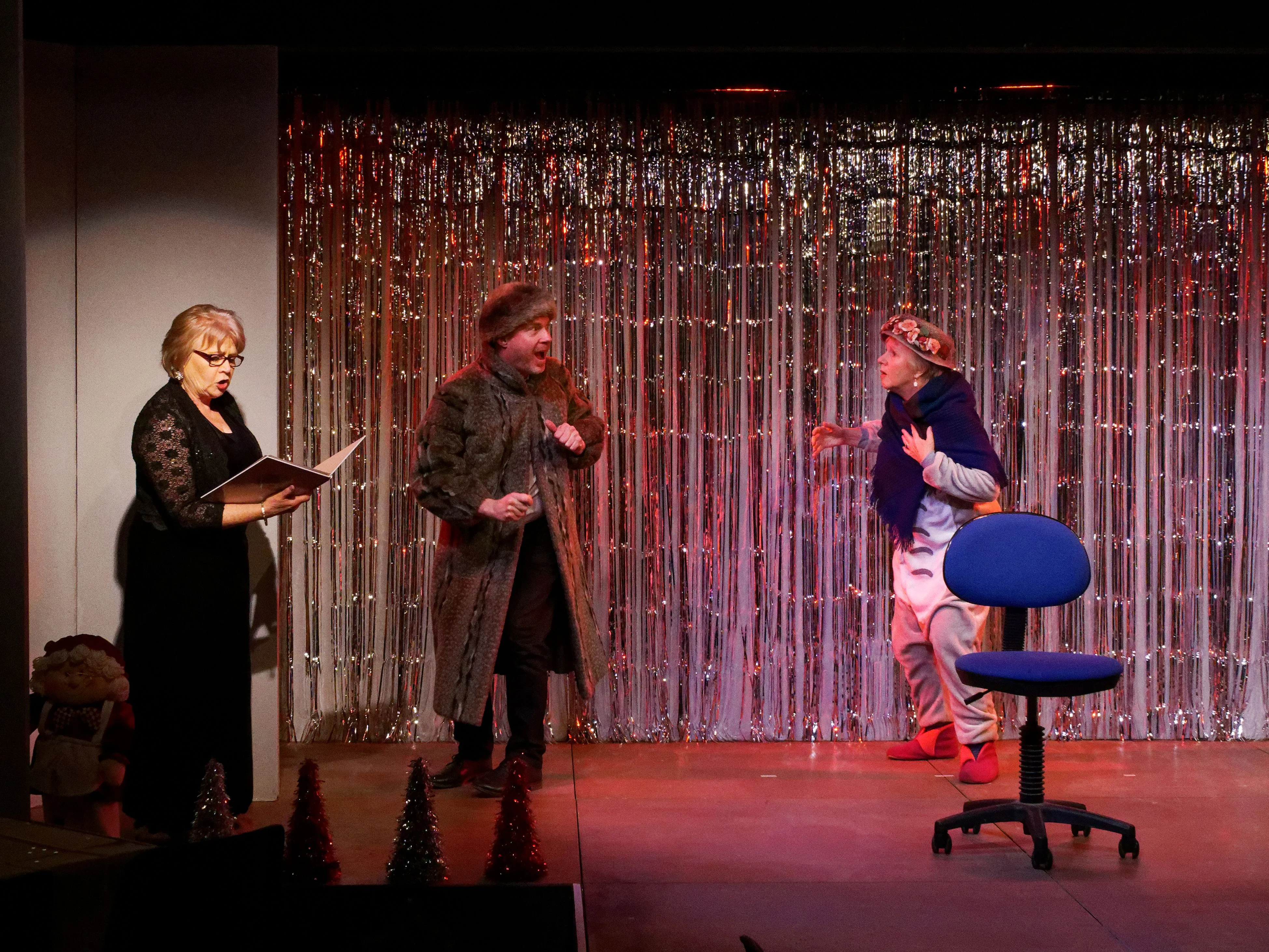 Directed by Nikki Packham, Theatre 62 proudly presented its Christmas Revue, alongside a light supper, from Wednesday 4th to Saturday 7th December 2019. Friends gathered for an evening of mayhem and merriment, with a sprinkle of Sparkle and a touch of Tinsel, as eleven actors performed sketches, poems, songs and bite-size pieces of festive fancy, all for the audience's delight. The ensemble: Janet ClarkDiane EbdenJanet EddenMargaret GlennMary-Rose GoodliffeMargaret HeySue HicksPaul NewtonJohn OakenfullStuart ScottJan Stockwell