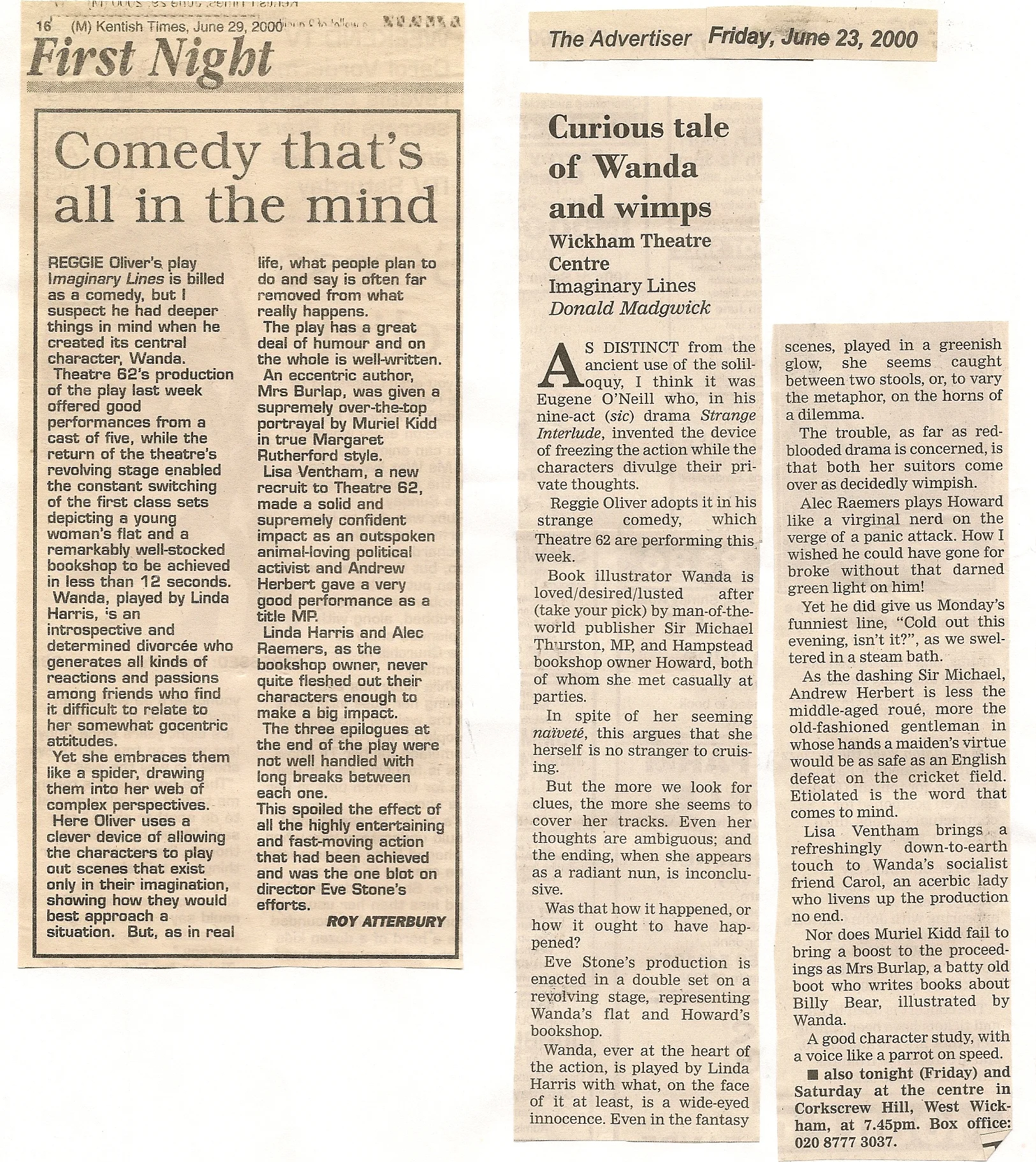 By Reggie Oliver. Directed Eve Stone. Wanda takes herself and her life very seriously indeed. Gentle Howard and succesful Sir Michael, the men who love her, try vainly to beat paths, imaginary or otherwise, to her door. However, Wanda, matchmaker - idealist - dreamer - is the despair of men. The action takes place a Hampstead in the nineteen eighties, in Wanda's flat and Howard's bookshop.