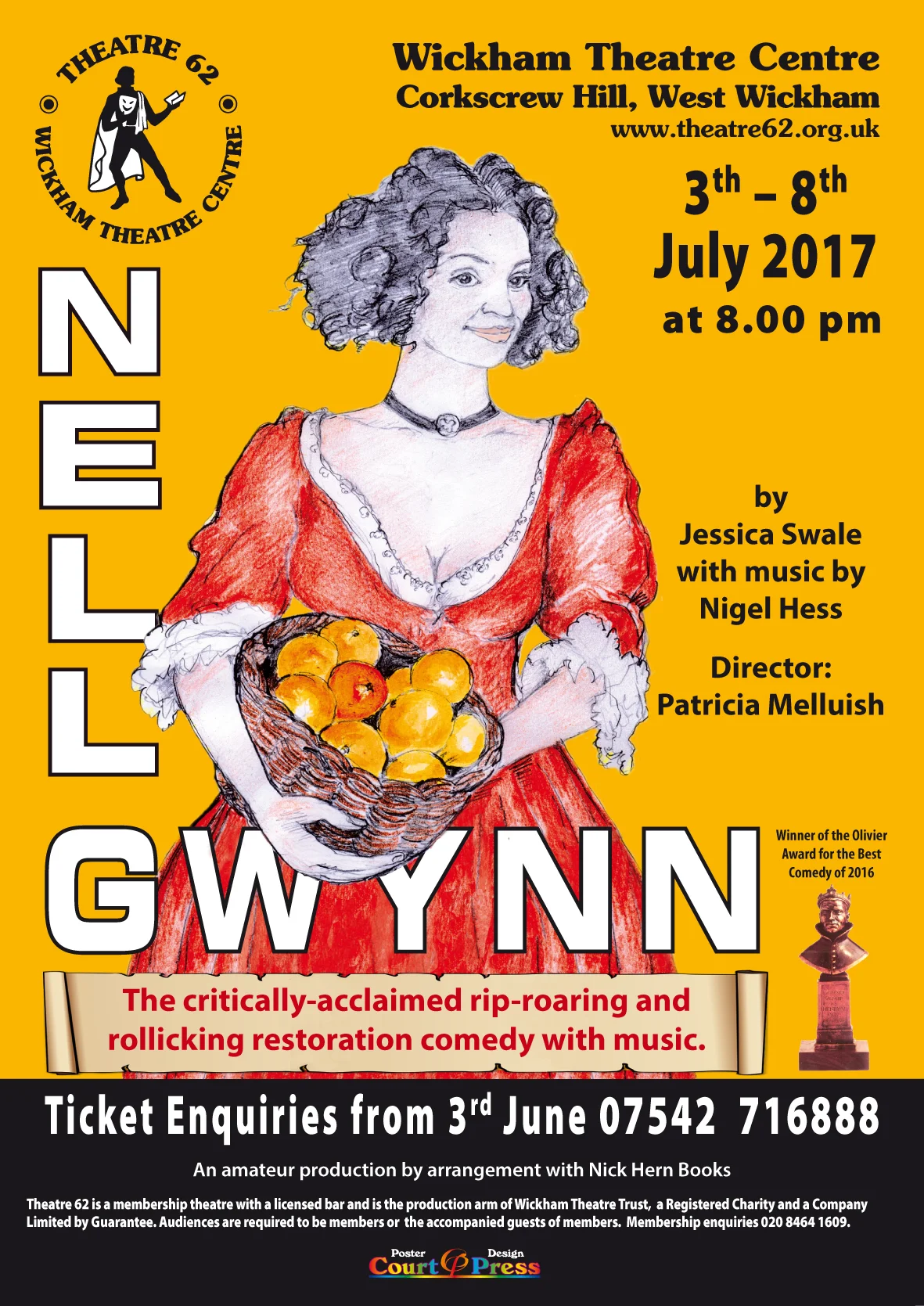 Nell Gwynn by Jessica Swale It's 1660 and the Puritans have run away with their drab grey tails between their legs. Charles II has exploded onto the scene with a love of all things loud, French and sexy. And at Drury Lane, a young Nell Gwynn is selling oranges for sixpence. Little does she know who's watching. Nell Gwynn charts the rise of an unlikely heroine, from her roots in Coal Yard Alley to her success as Britain’s most celebrated actress and her hard-won place in the heart of the king. But at a time when women are second-class citizens, can her charm and spirit protect her from the dangers of the court? And at what cost? Bawdy, playfully anachronistic with plenty of innuendo, this is highly entertaining new play - fresh from the West End.