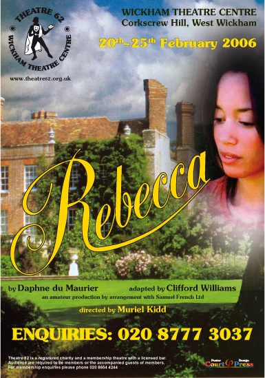By Daphne du Maurier, adapted by Clifford Williams. Directed by Muriel Kidd. Max de Winter's new bride arrives at Manderley to find the house filled with the presence of Rebecca, his first wife, whose memory is perpetuated by Mrs Danvers, the housekeeper. The second Mrs de Winter begins to doubt her husband's love until she uncovers the truth about Rebecca's death. The action takes place in the hall of Manderley, Cornwall, the home of Maxim de Winter, in early summer, some years before the second World War.
