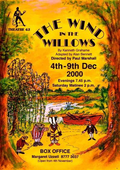 By Kenneth Grahame, adapted by Alan Bennett. Directed by Paul Marshall. Mole, Rat and Badger try to restrain Toad's foolish whimsies and penchant for fast cars, which land him in prison. Thrill as they brave the dangers of the Wild Wood and, by defeating the weasels, restore Toad to Toad Hall. Tha action takes place on The River Bank, The Wild Wood and The Wide World, near Cookham on the River Thames in the 1920's. Photos below.